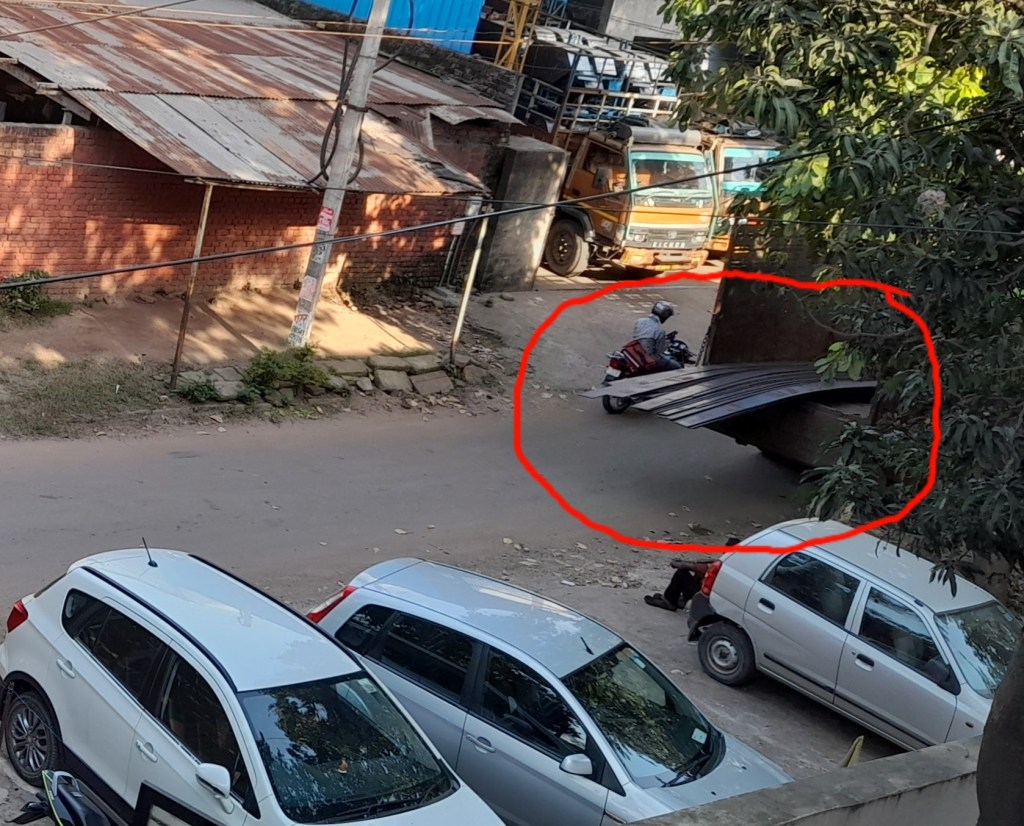 Above pictures show the “chalta hai” attitude of an commercial firm and transport agency as well as the driver of the vehicle. Above photo has been captured today in an industrial area of Mohali (Punjab). The transport vehicle is carrying long iron strips, overhanging from it.