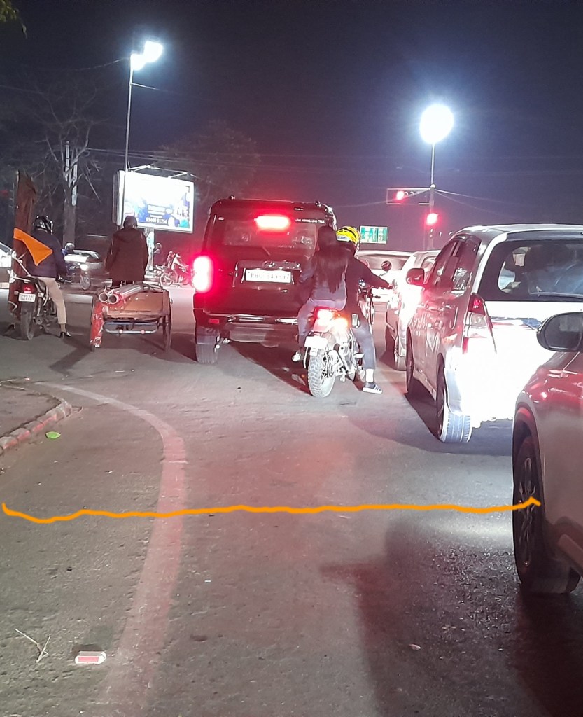 See how many persons have stepped over the safe zone as if they are reluctant to abide safety rules. Safety on road can be controlled by oneself, to maximum extent. Surprisingly, 1st one carrying a door panel and 2nd one carrying overlength pipes which may result in accident, fatal to any extent.