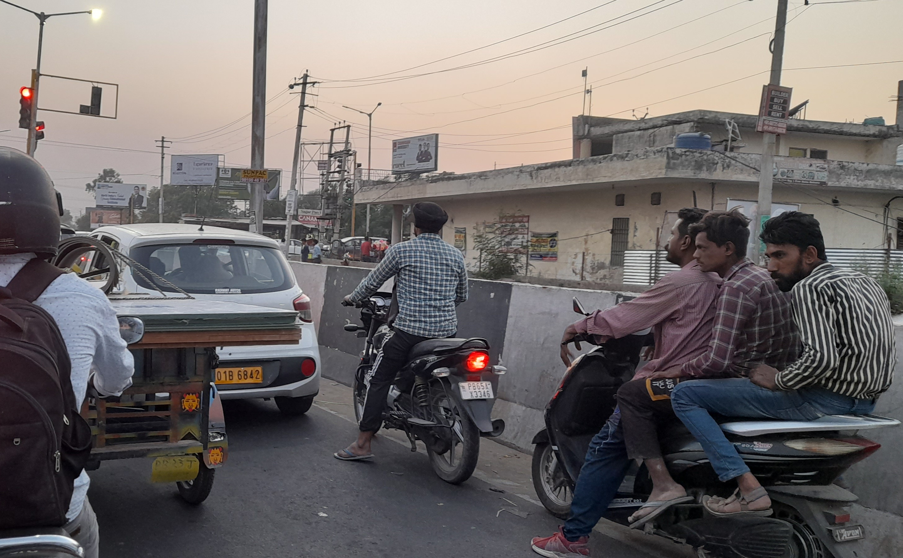 Photo taken on office closing time at traffic lights point at one of major road crossing in Mohali