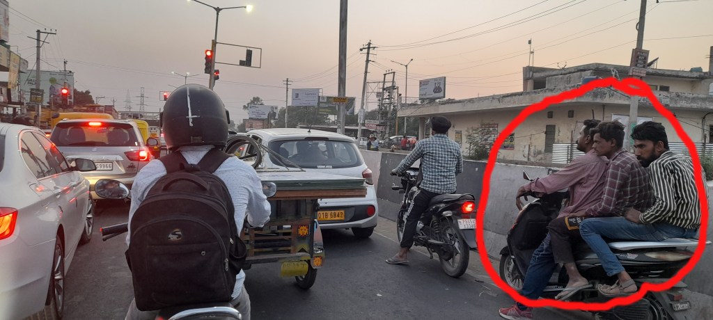 Hope you will not ignore the ignorance being shown by three guys sitting on the motorcycle, highlighted above.