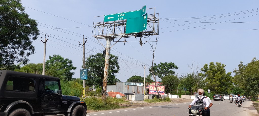 Above are the sets of photographs / video captured of overhead Sign board on Lakhnour Landran road in Mohali. As its loosely held panels swings with air flow, all road users using above mentioned route must be aware of the disastrous consequences if its loose panel breaks and falls on road. They must speak out and report such situation to concerned Authorities.