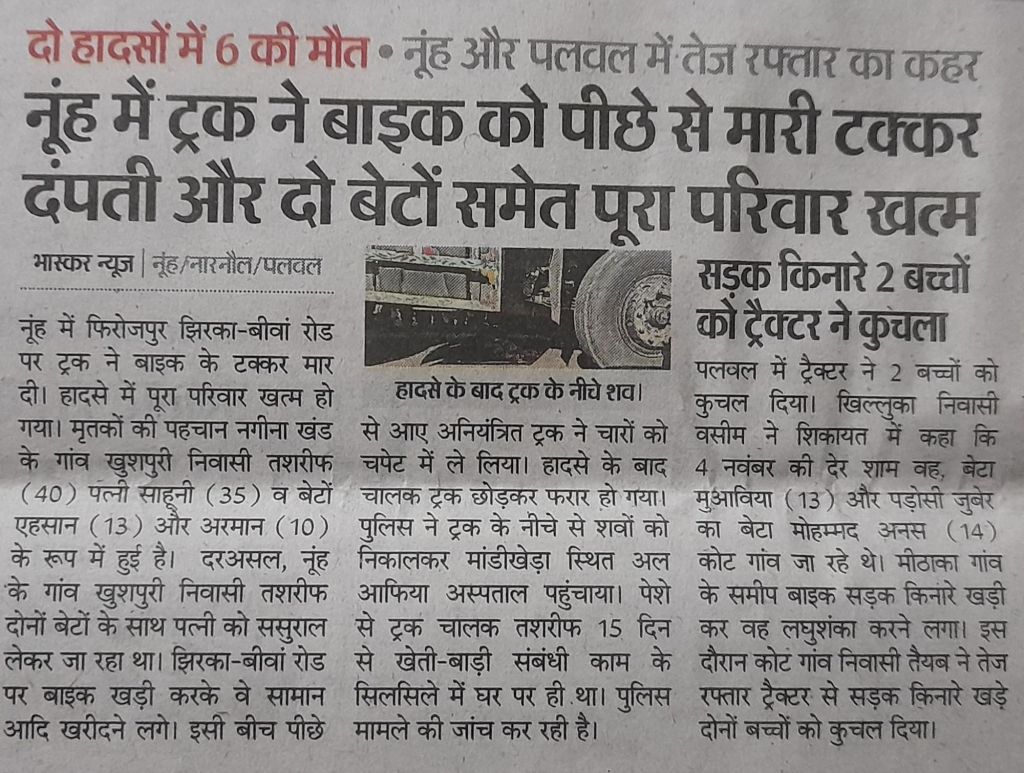 Below are the clips of 3 road accidents happened on one day, couple of days ago in Punjab & Haryana; mentioned on 2 different pages of a newspaper